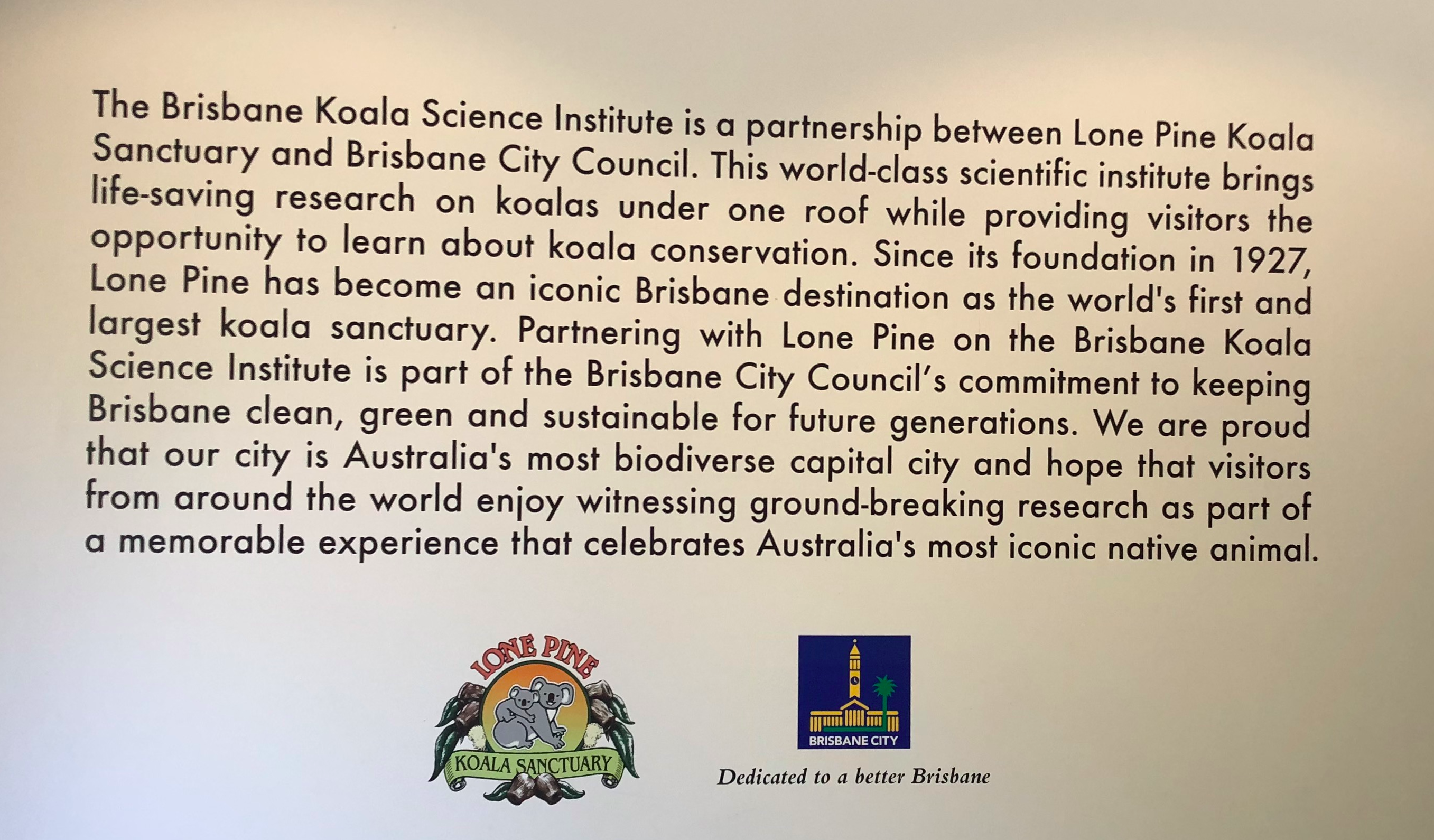 To address this problem, the Brisbane City Council partnered with Lone Pine Koala Sanctuary to form the Brisbane Koala Science Institute. The Institute has been instrumental in spearheading research solutions to conserve koala populations. One solution is to develop a Chlamydia vaccine that can be administered to wild koalas.